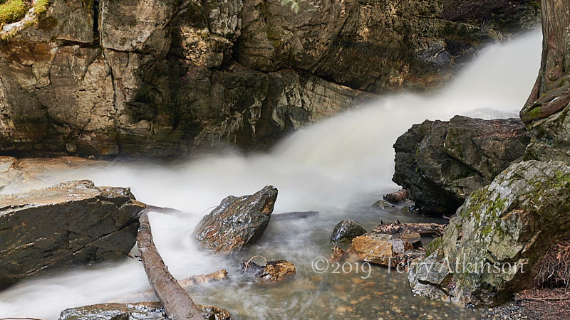 I have arranged the photos so the fast and slow shutter speed images are sequenced next to each other. It is interesting how the same picture looks quite different. In particular, the silky look of the water in the long exposure shots allows more space for the texture of the rest of the photo to jump out. The rocks, the exposed roots, and the moss growing on the rocks is quite striking. The four shots at the end are quite mystical to my eye.